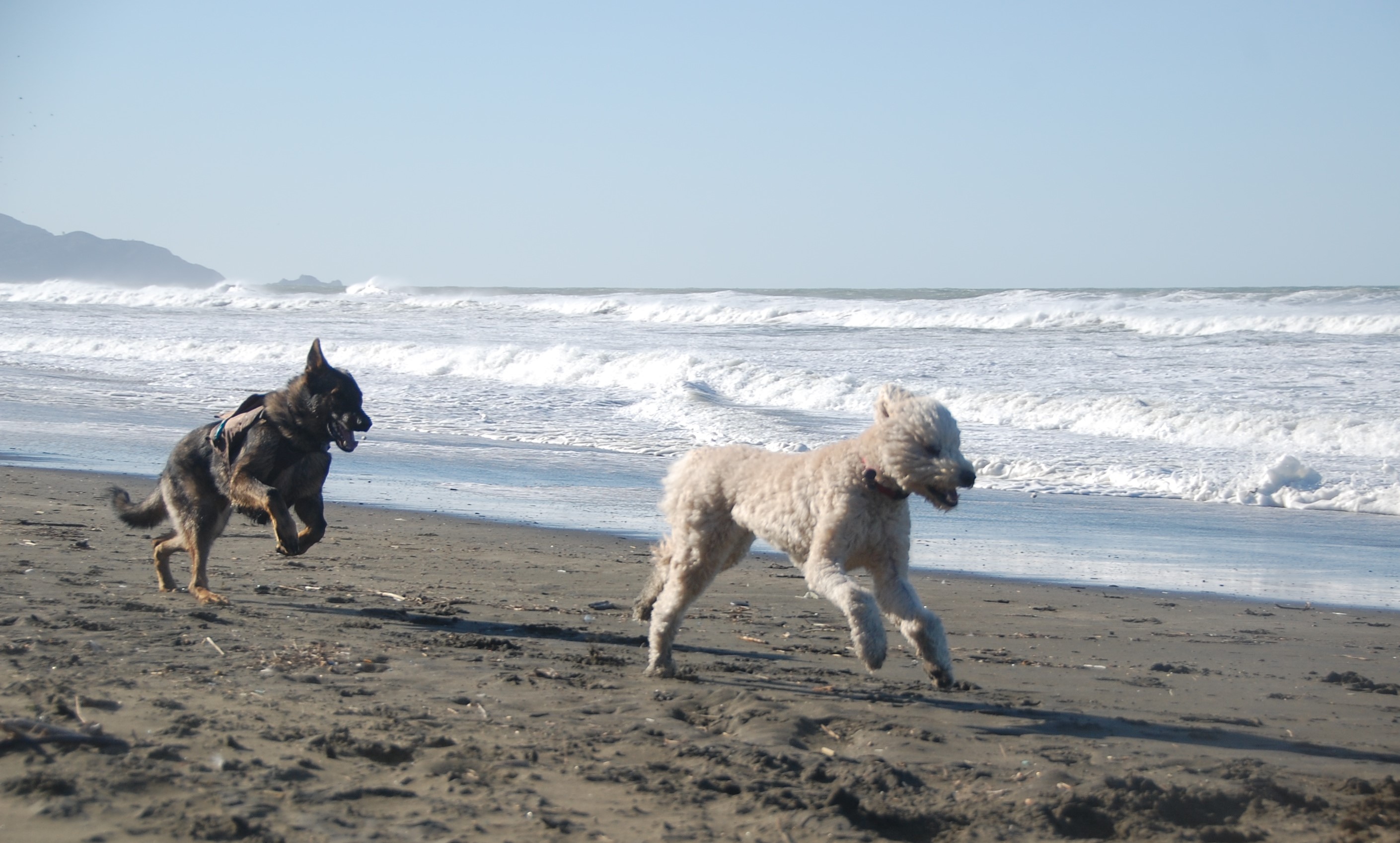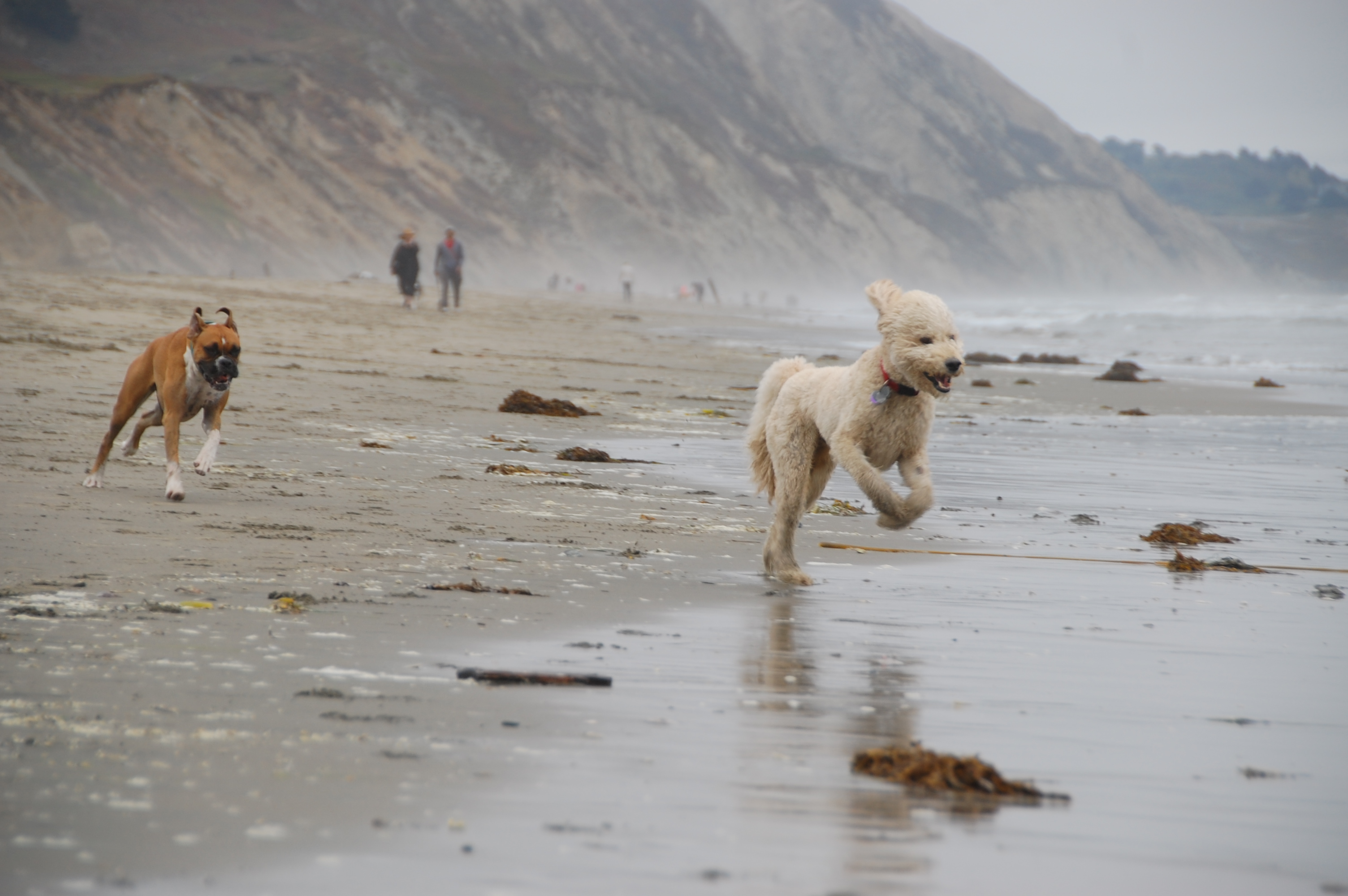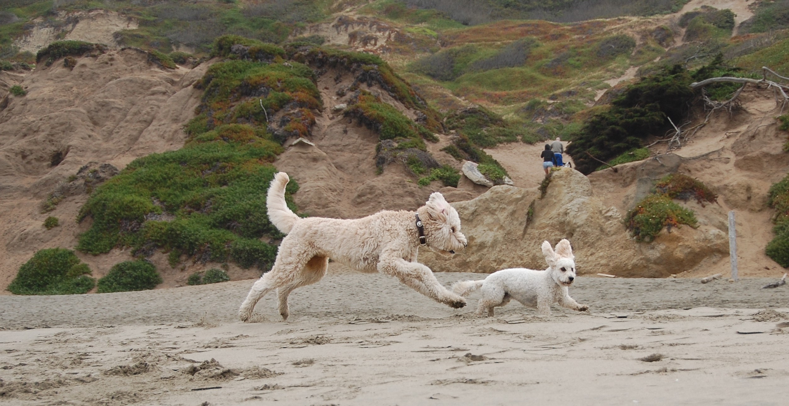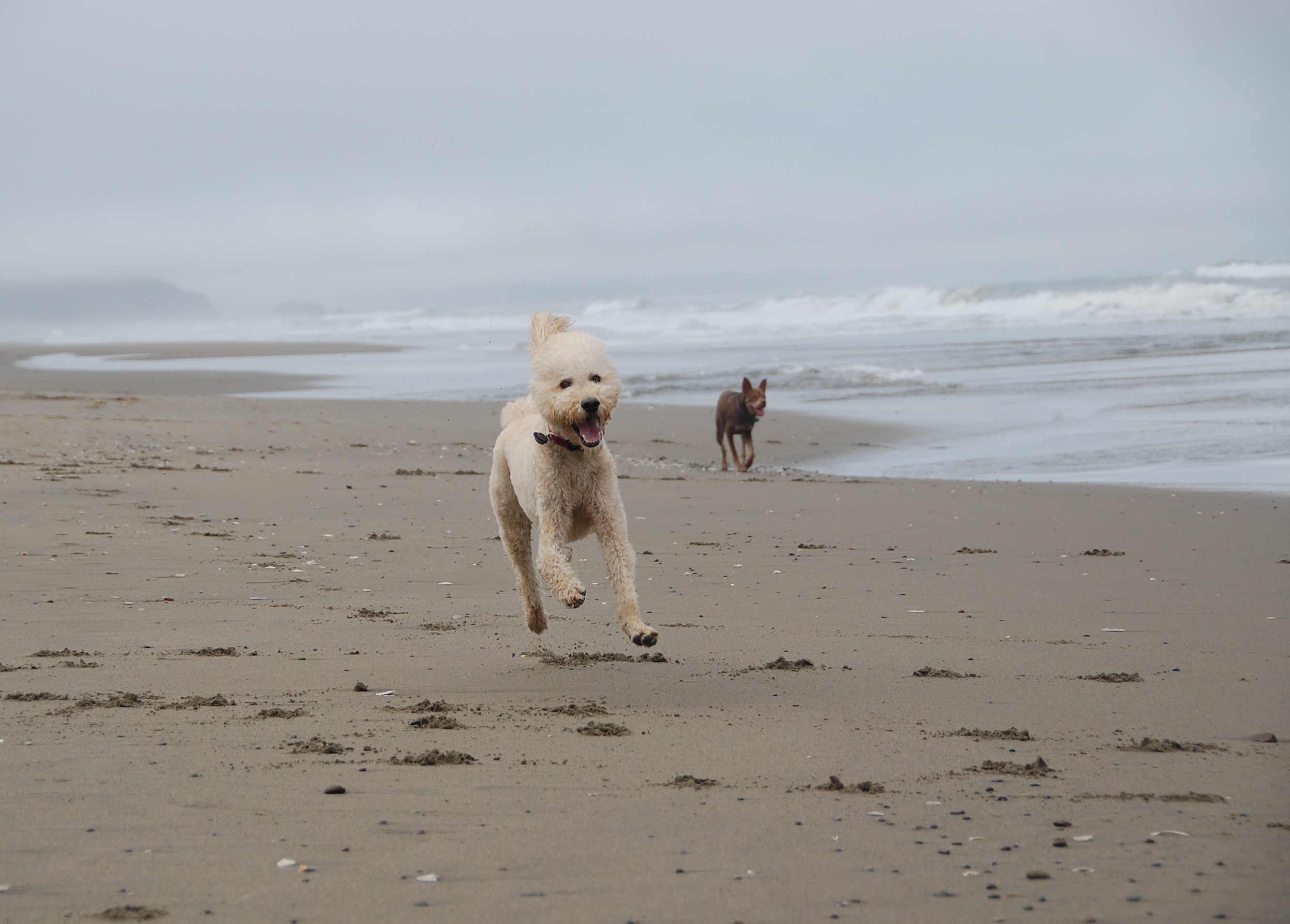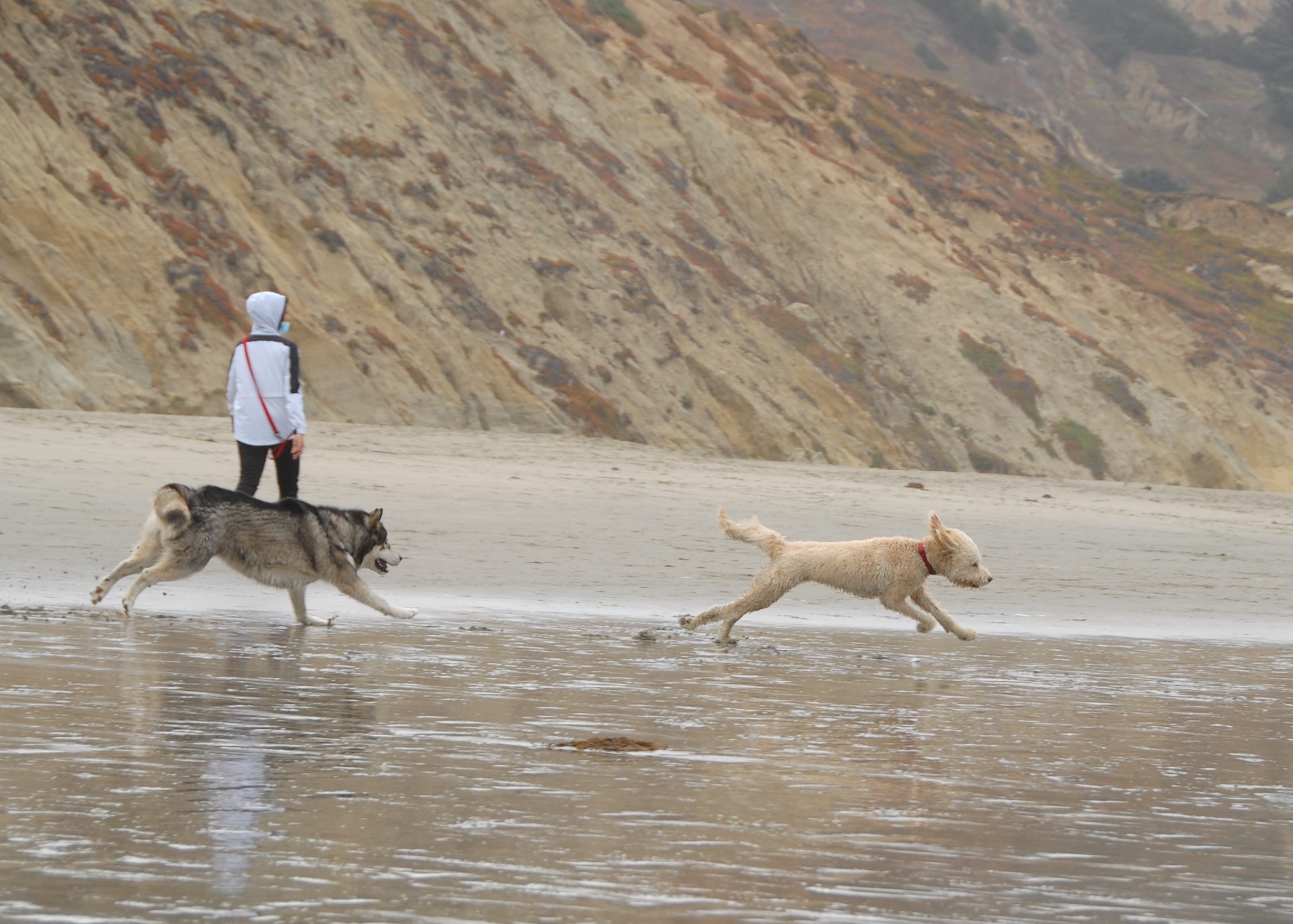 Fort Funston, California. December 31, 2019. With Rosie and Dexter. Met Timber (Husky/McNabb) and another golden doodle.