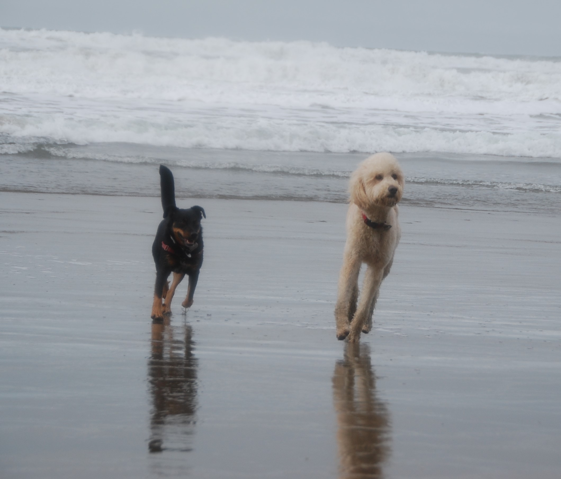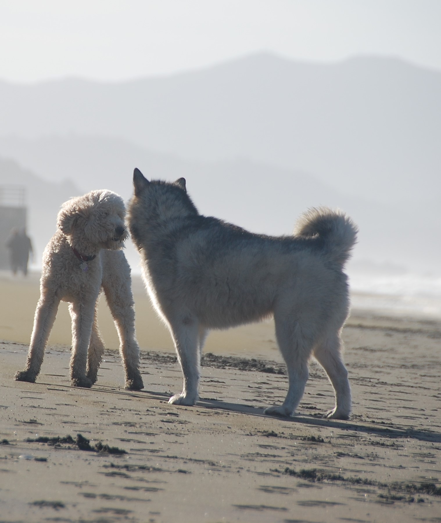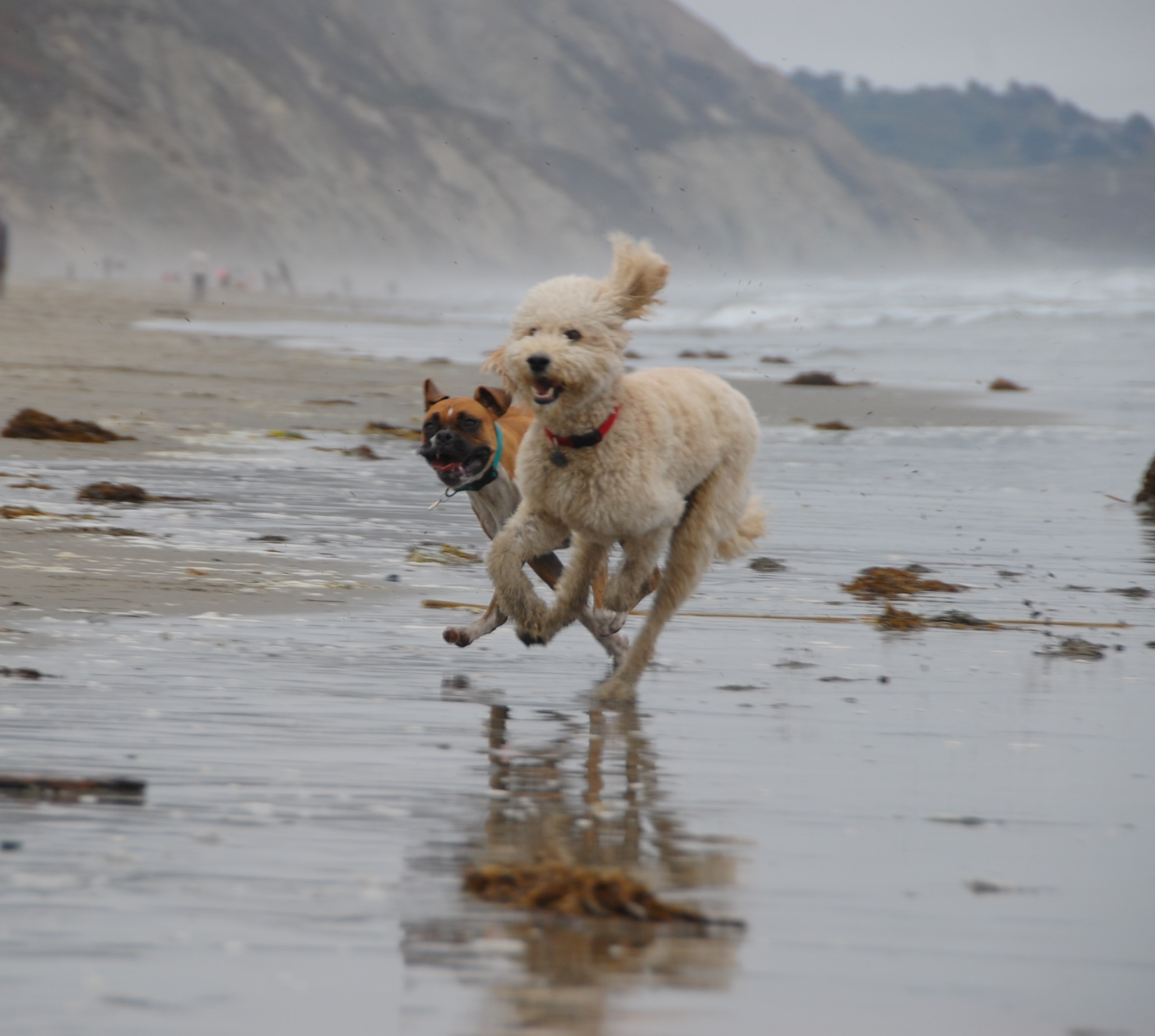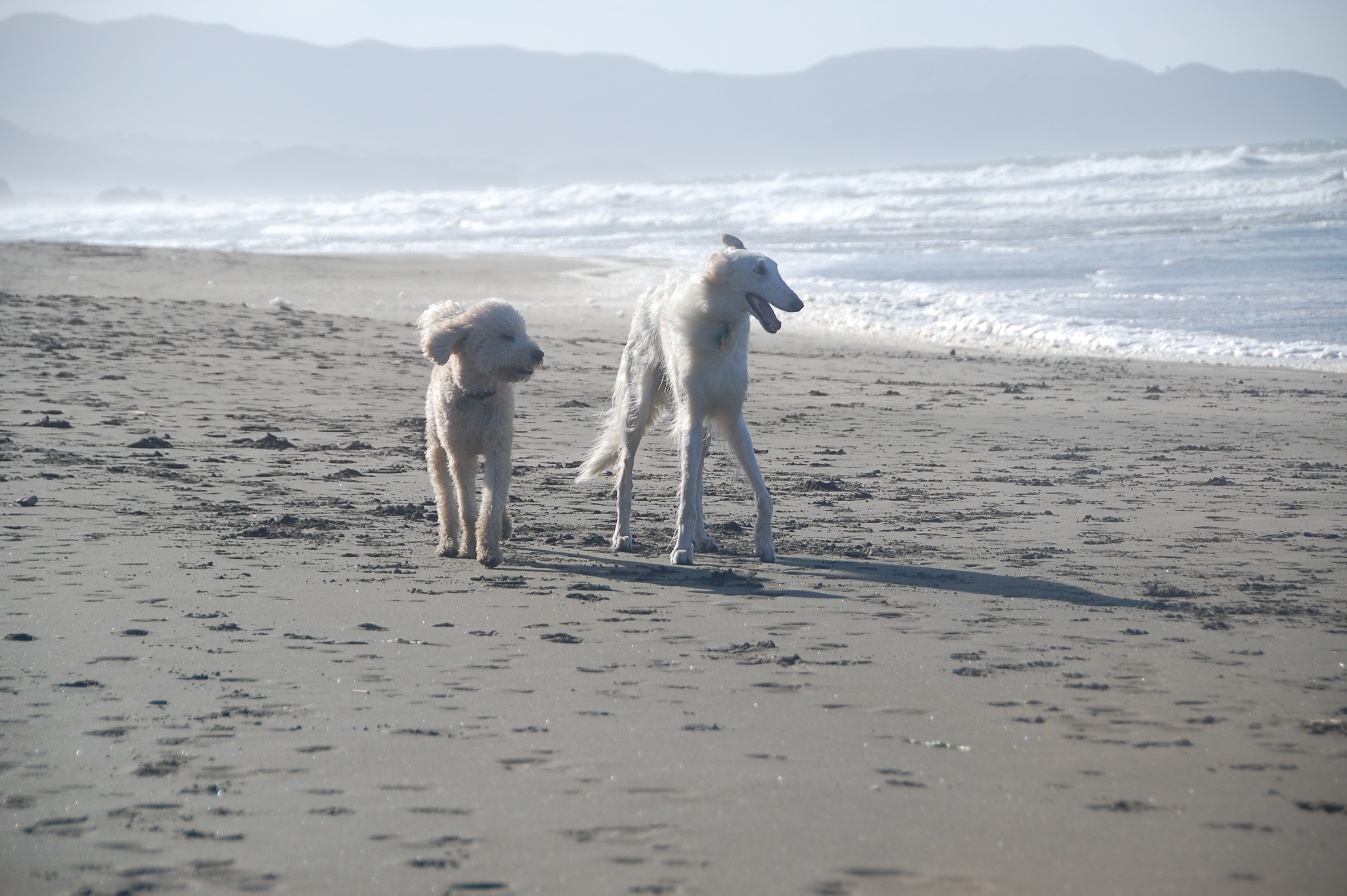 Fort Funston, California. December 31, 2019. With Rosie and Dexter. Met Timber (Husky/McNabb) and another golden doodle.