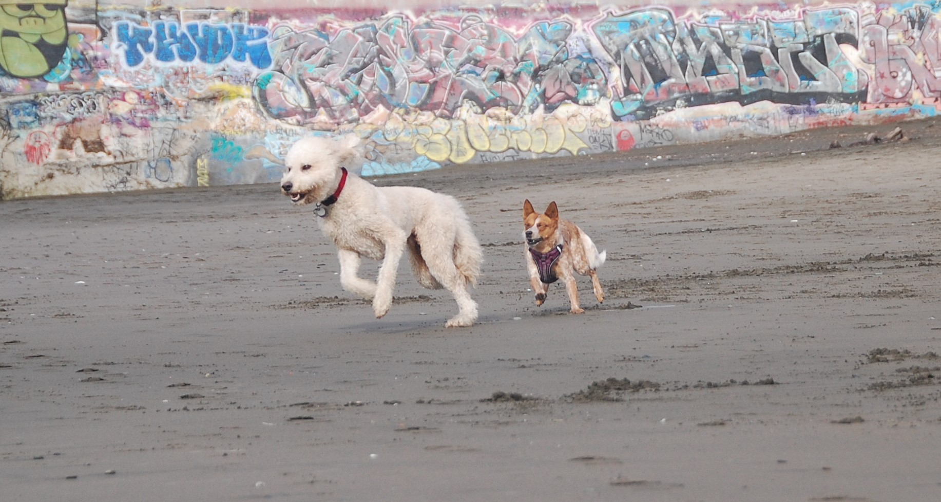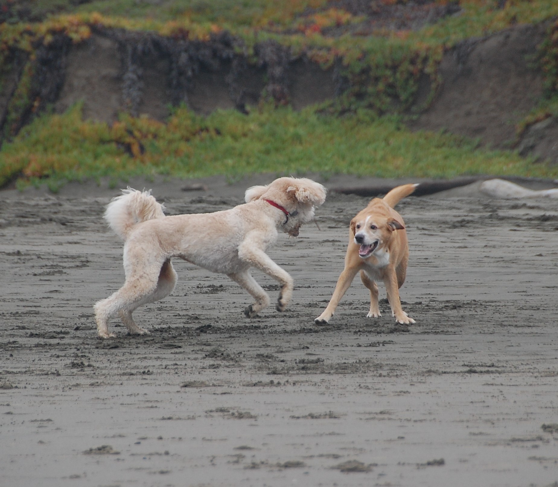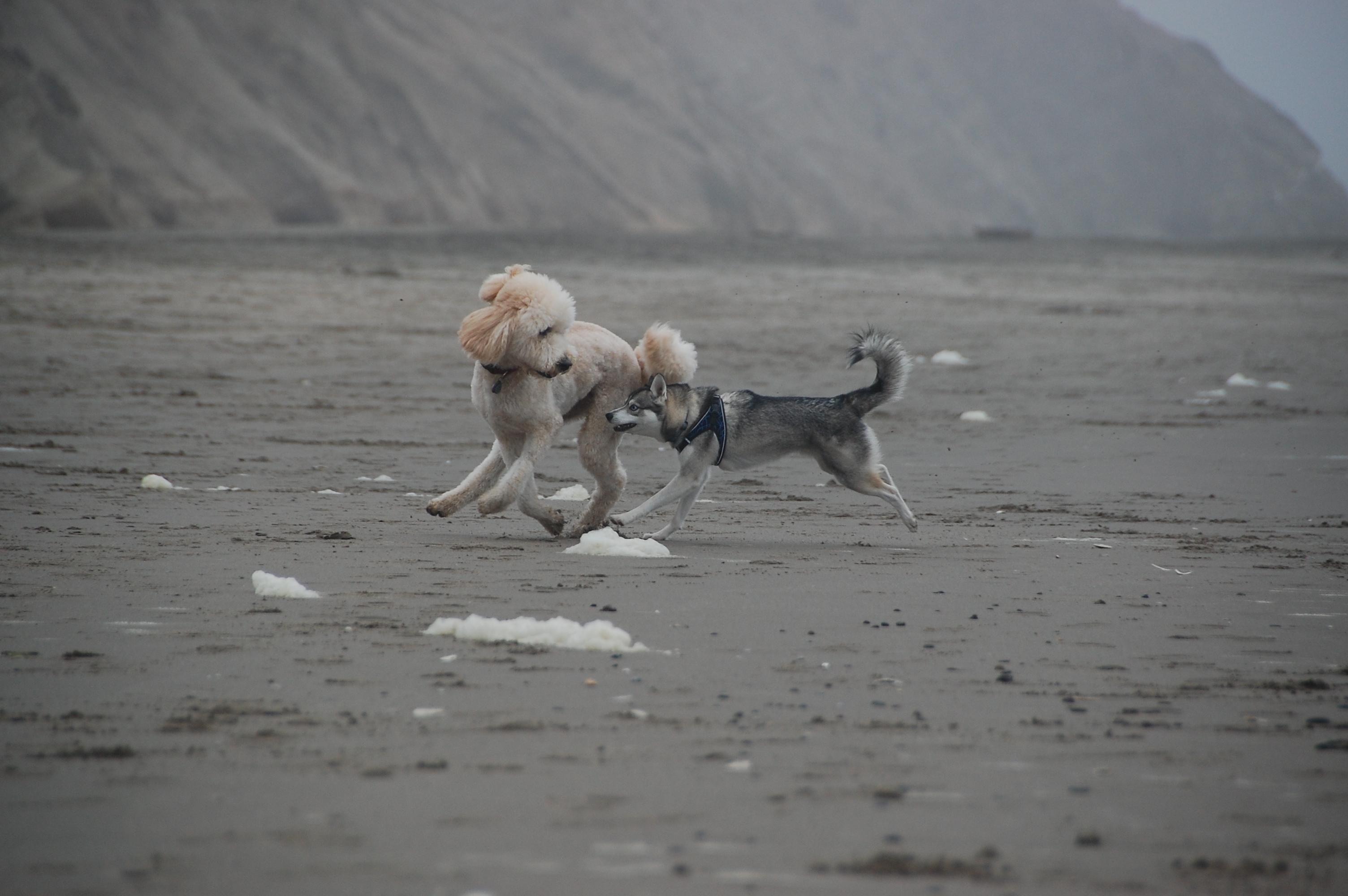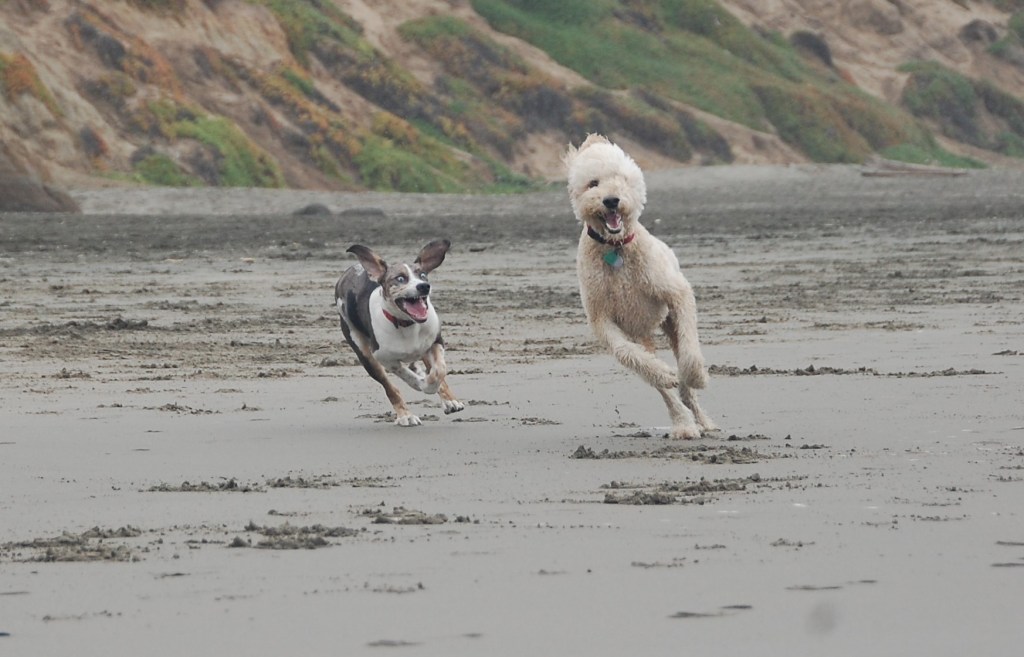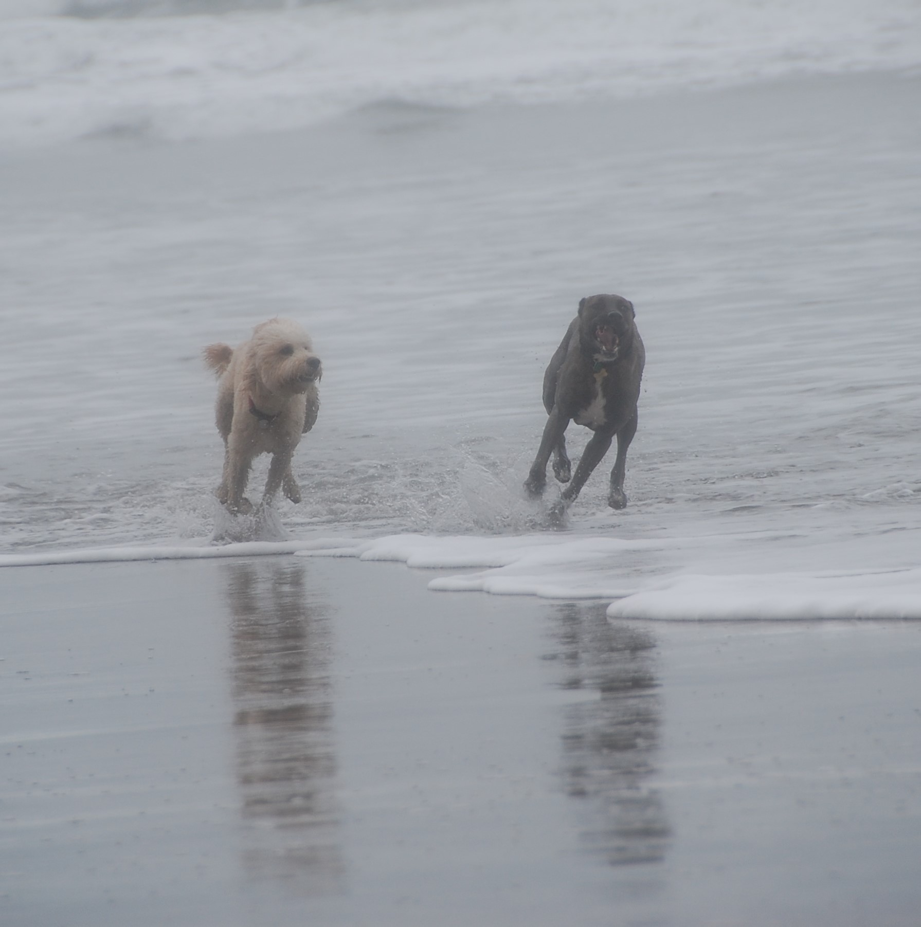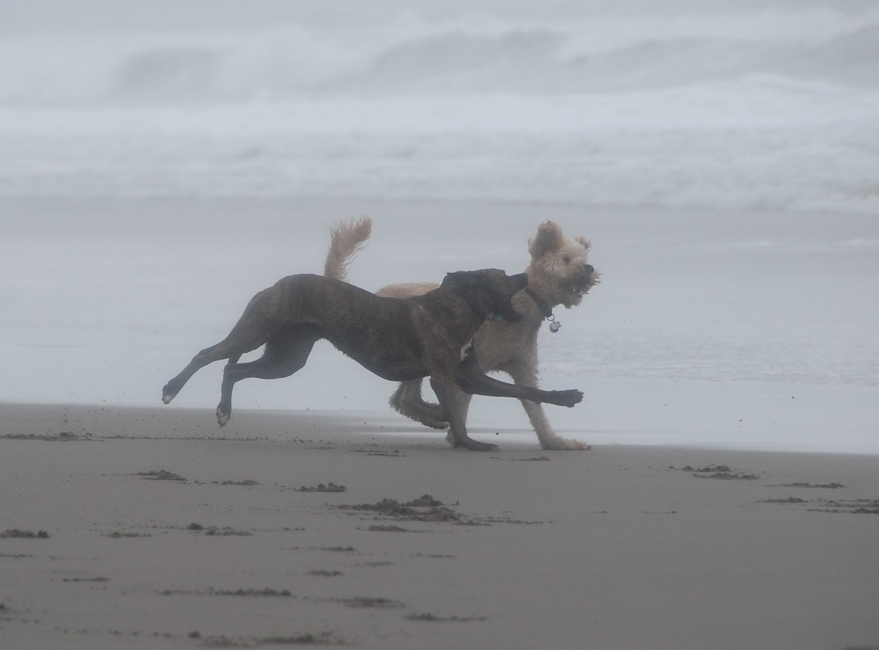 Fort Funston, California. December 31, 2019. With Rosie and Dexter. Met Timber (Husky/McNabb) and another golden doodle.