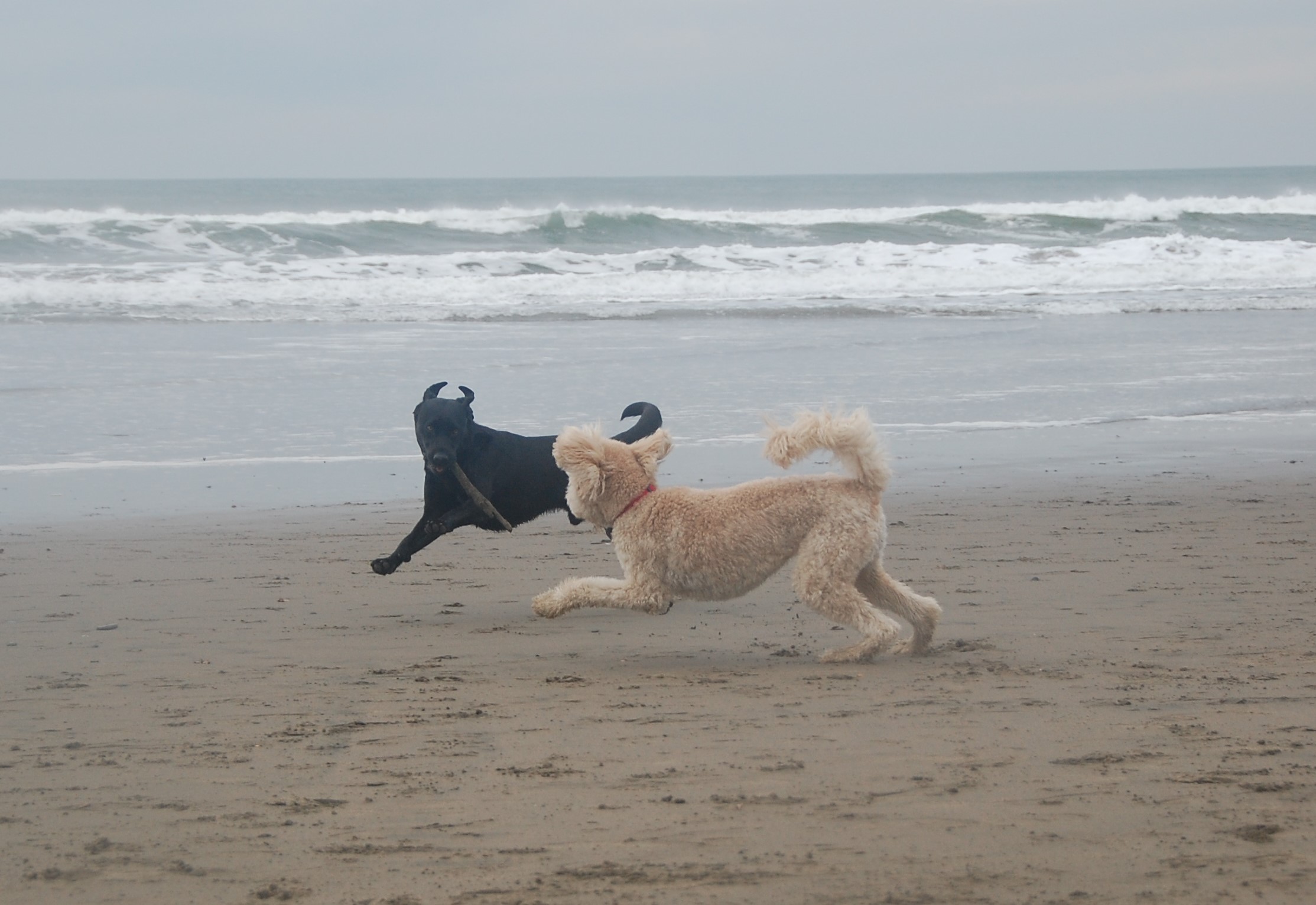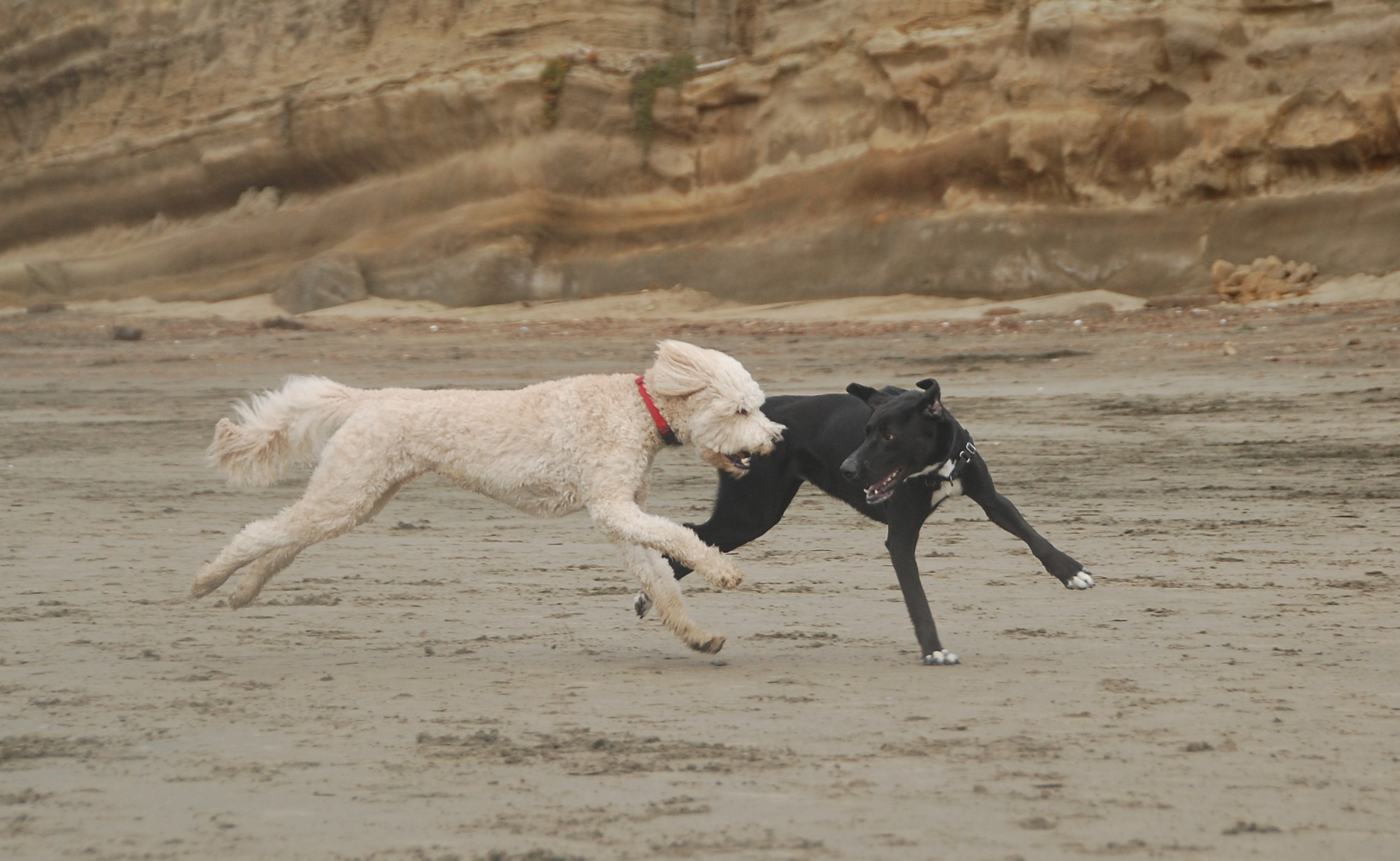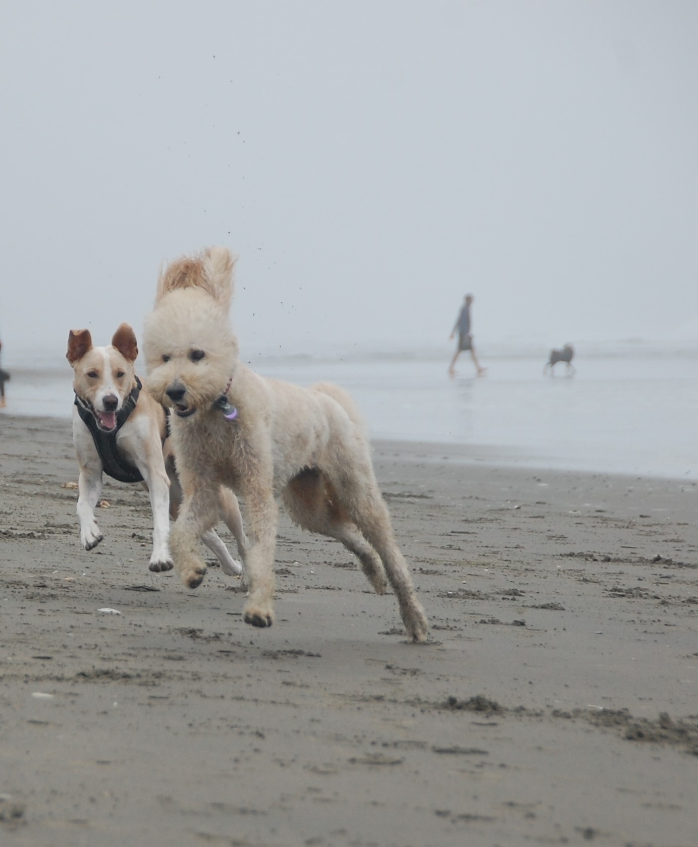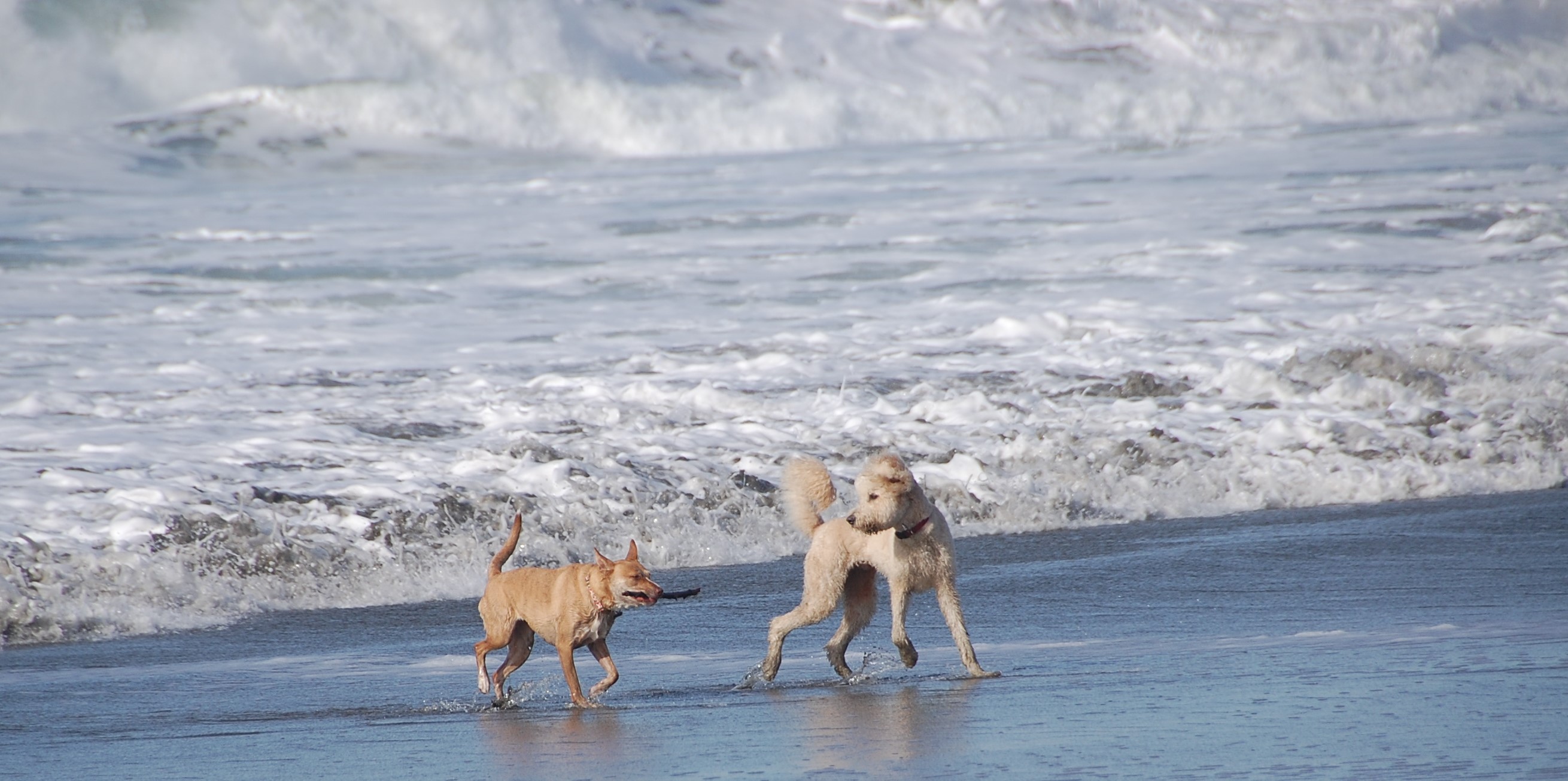 Fort Funston, California. December 31, 2019. With Rosie and Dexter. Met Timber (Husky/McNabb) and another golden doodle.