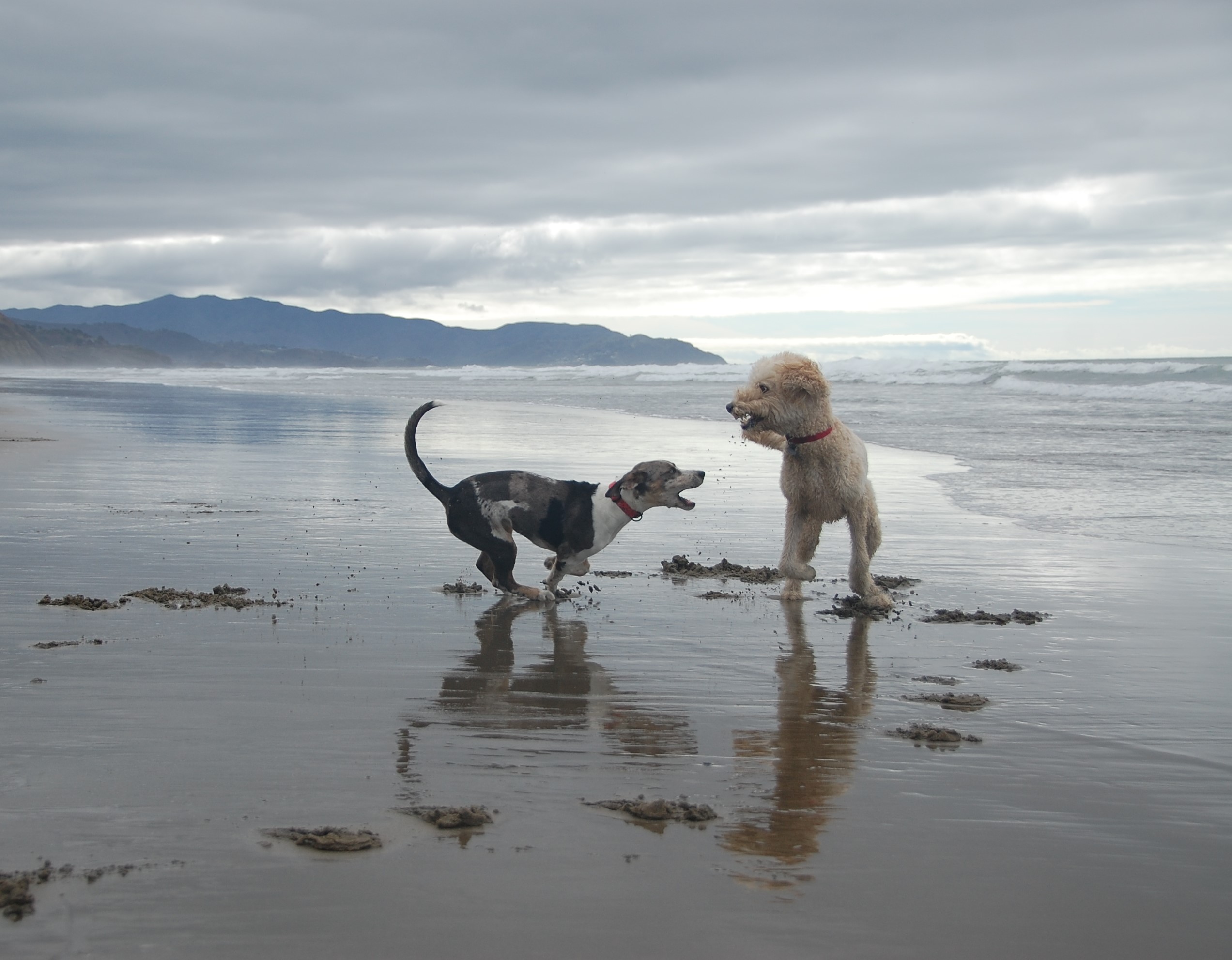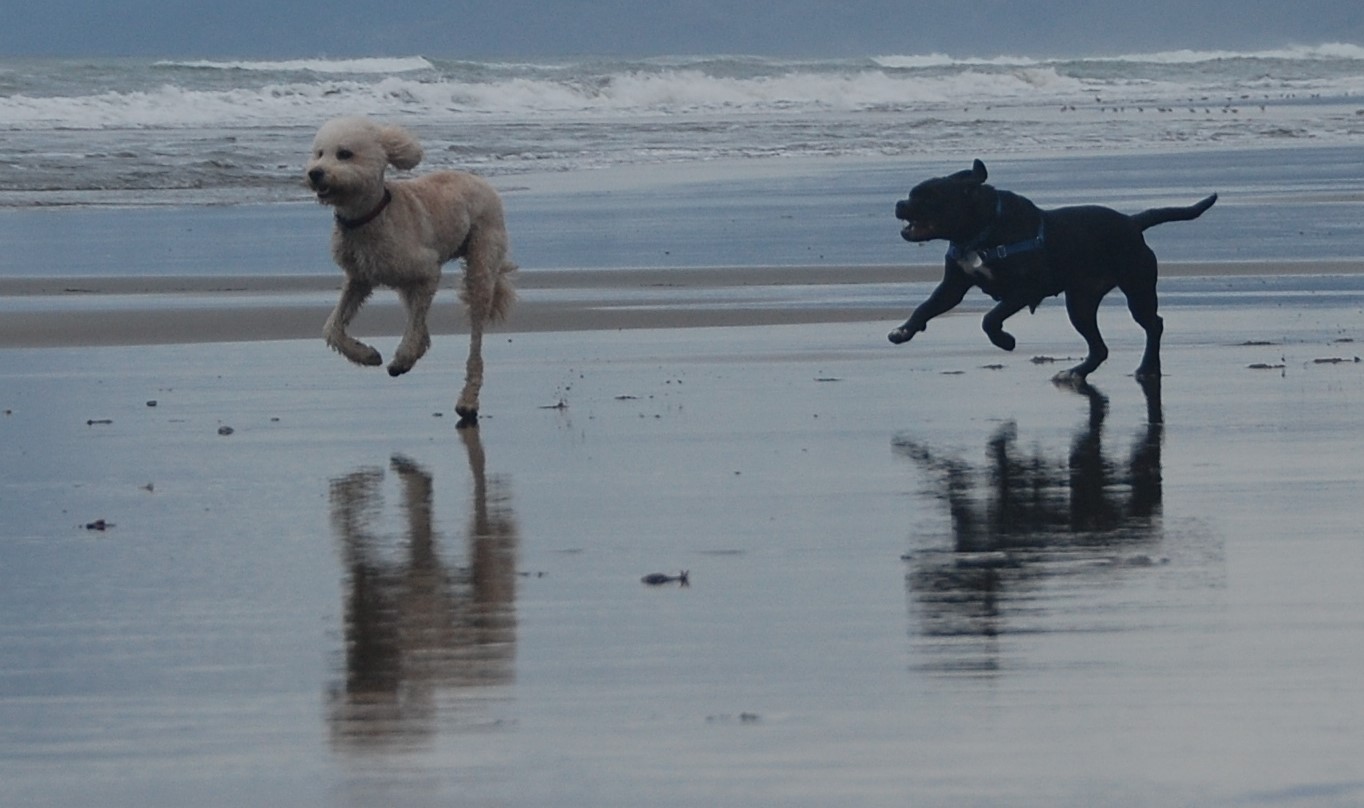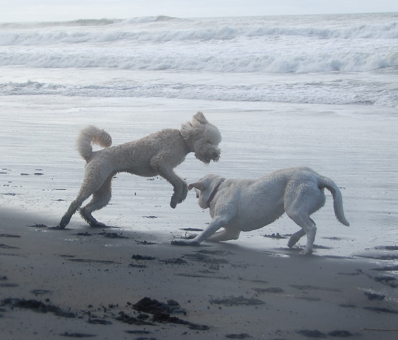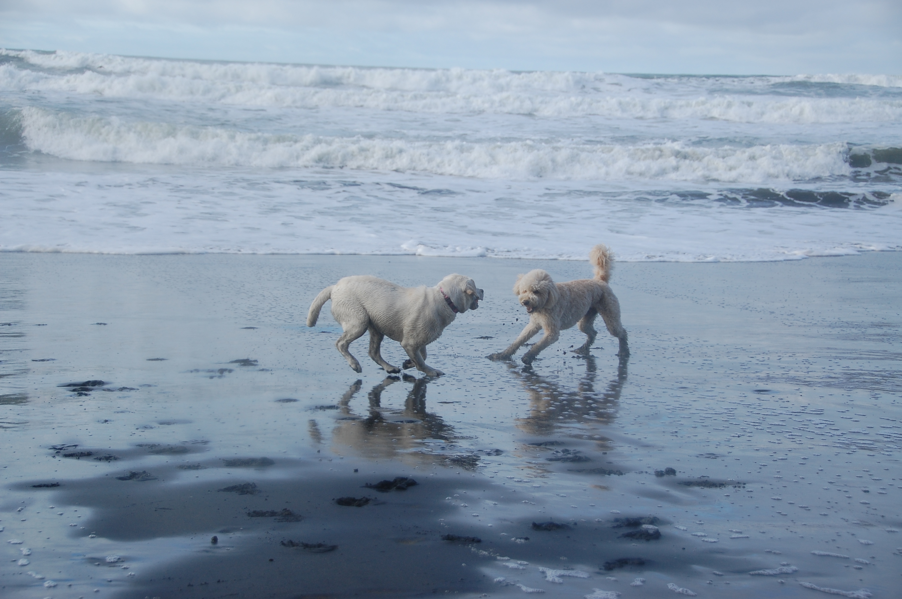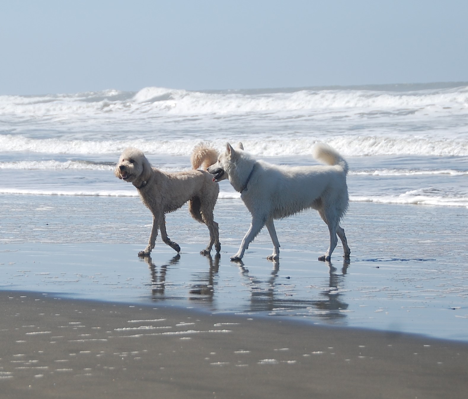 Fort Funston, California. December 31, 2019. With Rosie and Dexter. Met Timber (Husky/McNabb) and another golden doodle.